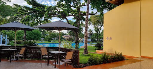 Read moreMy wife and I stayed 5 nights, arriving at 1PM on the hotel’s TMS Airport shuttle. A nice receptionist assisted by the English-speaking manager copied my reservation, produced a key and a porter carried one of our bags upstairs to check the room. We soon discovered it’s underperforming AC and with the head housekeeper, we chose an acceptable room, then made payment with a VISA card. |#209 was tiled opening to a sliding door closet with a small refrigerator and safe, across a fully outfitted bathroom with a tub shower(broken mount for handheld shower). Next was a long shelf with an average reception cable TV(AXN shows/movies and Nat. Geo. in English, France 24 in French and more local channels) across 2 comfortable twin beds put together. The nice sized room had proper lighting/outlets/hot water, quiet AC, good secure WIFI and was serviced daily.|Glass doors had a lovely wide view of the large garden’s huge pool which we used daily.|The 7AM breakfast buffet was attentively serviced; juices, fruits, wheat flakes with several seeds and grains, egg station, cold meats/cheese, breads/rolls/jam and decaf/coffee/tea. |-This somewhat aging hotel(built in 1986, refurbished in 1996) has a comfortable lobby, beautifully tiled restaurant and a landmark pool surrounded by a spacious garden, all kept very clean and welcoming by diligent staff. Our Sao Tome manager, trained in Lisbon, went out of his way to acquire our needed Gabon Visas from its embassy recently moved to the suburbs.|-We visited the 2008 sister hotel(their nice English-speaking Portuguese manager arranged a tour) located 600m south, noting its ocean view rooms, spa/gym and upgraded breakfast(muesli, more meats/cheese & chocolate cake) but its infinity pool and unshaded garden are both small and tightly sited. |-We freely walked around the city center: Fort Museu Nacional, Catedral de São Tomé, Igreja da Conceição, Mercado Municipal, shopped at the Colombo Supermarket and ate lunches at Papa Petisco, Papa-Figo and here at our air conditioned...