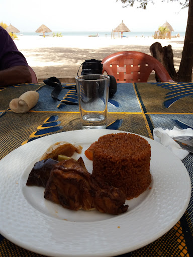 Nous avons dĂ©jeunĂ© et rĂ©servĂ© un tour en pirogue Ă travers La Pointe de Sangomar. Nous ne recommandons pas du tout ce prestataire de service. Le tour en pirogue Ă©tait extrĂȘmement cher (25 000 XOF) et loin de tout ce qui nous avait Ă©tĂ© promis. Nous Ă©tions censĂ© avoir « un tour de 3h Ă 4h, incluant les entrĂ©es dans le parc et un itinĂ©raire de qualitĂ©, bien loin de ce que peuvent nous proposer les pĂȘcheurs traditionnels ». Finalement nous nâavons fait quâun tour de 2h, oĂč nous nâavons RIEN vu (car Maurice, le propriĂ©taire sâest bien gardĂ© de nous dire quâen plein aprĂšs-midi, les animaux ne sortent pas), sur une pirogue bien vieille et qui allait tellement lentement que nous avons mis 1h rien quâĂ traverser la rive. Le propriĂ©taire du bateau nous a amenĂ© voir 2 baobabs puis a rebroussĂ© chemin aprĂšs avoir tentĂ© de nous estoquĂ© de lâargent en nous demandant de payer des entrĂ©es dans un village et un droit dâaccĂšs qui Ă©taient censĂ©s ĂȘtre inclus. Nous nâavons donc rien vu, et lorsque nous sommes rentrĂ©s Ă La Pointe de Sangomar, le fameux Maurice Ă©tait introuvable donc, parti avec notre argent. Le dĂ©jeuner soit disant servi "rapidement" Ă©tait quant Ă lui inexistant, 5 crevettes qui se courent aprĂšs pour 3000XOF, et qui ont mis plus dâune heure Ă ĂȘtre servies. Bref, propriĂ©taire malhonnĂȘte, passez...