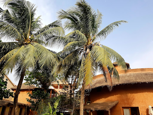 une manière originale de séjourner à Saly . 4 petites villas dans un jardin clos avec piscine , un service avec du personnel pour le ménage et les repas . Un côté africain dan les maisons très chouette , au coeur du village à 20 m de la plage . A gauche les hotels ( bof ), à droite les résidences (plage sympa. ).On mange divinement bien de la cuisine local . ||Charmant , à recommander et pratique avec les enfants .||Seul bémol, un peu bruyant parfois à cause de la prière dans le village , pas mal de poussière sur saly . Piscine et mer fraiche à cette époque . Un bon rapport...
