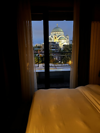 Read moreОстанавливались здесь в конце сентября 2016 г., будучи в командировке.||С заселением проблем не было, т.к. приехали поздно - около 22.30. Оформление документов и выдача ключа - не больше 7 минут. Номер был 306 - с видом на храм. ||О НОМЕРЕ: двухместный, большая удобная кровать и подушки, теплое одеяло, свежее чистое белье, жк телевизор (ок. 40'') с многообразием каналов на разных языках, много вариантов освещения, наличие туалетного столика и большого зеркала перед ним, удобное кресло. Нехватки розеток не ощутили (переходники не нужны). Холодильник забит соками-водами-спиртным, есть снеки-шоколадки-жвачки, прайс на все прилагается. ||Шкаф с подсветкой, что тоже удобно. В шкафу есть сейф и инструкция по его применению.||В комнате - ковролин, светло-серый, пятен не было замечено.||Ванная - большое зеркало, шампунь-гель-мыло-бальзам для тела- шапочка для душа- имеются. Душевой уголок приятный- с душем обычным и тропическим. Но: нет уплотнителя на нижней части дверки и вода, не взирая на порожек, попадает за пределы душевого уголка. Для нас - не критично, но замечено.||На полу в ванной- плитка. ||Везде очень чисто, намеков на плесень нет совсем.||Полотенца, как и постельное белье, может заменяться ежедневно (по желанию гостей). ||ЗАВТРАК: очень и очень хороший - чай, кофе (фильтрованный или из кофе машины), мюсли, орехи сухофрукты, непременно сыры, ветчина, яйца (глазунья, омлет с сыром или просто сваренные), сосиски, интересные рулеты, пара салатов, йогурты, булочки, джемы, мед, шоколадная паста, фрукты, кексы, был торт Прага и слоеные рулетики с маком.||Места в баре хватает всем, столы мило украшены, есть выход на веранду, что очень здорово в теплые дни.||Обедали и ужинали - в городе, поэтому без комментариев.||При выписке спросили пользовались ли мини-баром, услышав, что нет - ничего не проверяли. Только лишь спросили нет ли к ним вопросов и все ли понравилось)||Ах да, люди на ресепшн и в баре очень симпатичные, приветливые, говорящие на сербском и английском. Спасибо всем за гостеприимство.||Цена – около 49 тыс. динар за 5 дней.||РАСПОЛОЖЕНИЕ: очень удачное - вид на храм Св. Саввы, с легкостью дошли до пешеходной улицы, не пропустив ни одного магазина, прогулялись по Белградской крепости - Калемегдану, откуда открывается очень красивый вид на стрелку - слияние двух рек - Дуная и Савы, кроме этого здесь же есть и другие достопримечательности, в числе которых - памятник Победителю и церквушка Параскевы Пятницы. А также отличный ресторан - Kalemegdanska terasa. О нем - в отельном отзыве).||В ОБЩЕМ, отель понравился, смело можем рекомендовать к заселению и можем точно сказать, что сюда вернулись...