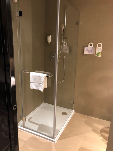 The shower/toilets has a large transparent glass window with direct view on the room. So it's not possible to use the shower/toilets while keeping any privacy towards someone in the room. I was alone, so this wasn't an issue but it's to consider if you travel with a partner. I don't know the point of that as there is no practical or aesthetic reason to create a view between the toilet and the room.