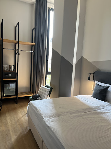 I was surprised to see the wooden floors. Everything is new, well designed and well-lit. Bed consists of two beds put together, but very comfortable. The bathroom is super small, could use a few centimeters more between the toilet and the sink. I absolutely fell in love with the shower gel, it smelled like mint and the liquid soap was also lovely. But please note: hair dryer is almost cold! If you have long hair, it will take a lot of patience to dry it. The room I stayed in was on the first floor, well- heated and had a nice view to the front street. The window is narrow, from floor to top, and besides bed there is a work desk and a chair, with complimentary designer bottle of water and instant coffee. It was really difficult to sleep when someone else used the shower, because I could hear the water in walls. Other than that, I had no complaints. All in all, it is a really nice hotel with an okay breakfast at a...