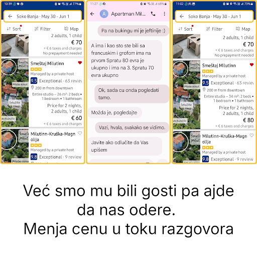 Searching for best place for family with kids, we have found it. On the edge of promenada in Sokobanja, apartments are functional, clean and recently build. Big rooms with large comfortable beds and new bathroom. It has private parking place with lot of lights. In the rear of the apartment building is green park acompanied with oak tree and nice view. Price is medium, but for quality vacation is...