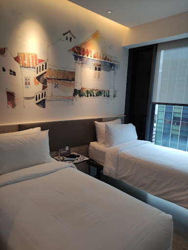 Read moreMercure Icon was one of my three shortlisted locations besides Mount Faber and IBIS Macpherson for a maiden stay. The less than a year old was the catch given all three charged a fee of $180 + per night. Impression remains positive at both check in reception and lift lobby. After entering unit #17-11, impression and reality of space took a change. Mobility within toilet and shower was really challenging without room for movement. The number of 8 lifts served us well and we had a tour of facilities on second floor. Both the gym and swimming pool were overwhelmed with hotel guests at 4pm. so was the cafe and the common area at the ground floor. A brief use of pool at 830pm before closing time and there were no shower / bathing facilities to be found after gym or swim usage on 2nd floor. The male toilet was equipped with three standing urinals and no available items to do a change of attire. The bail out was back to hotel room for shower. During the swim usage, I could see the non stop lighting flashing non stop on the left building from #10 above and it must be hurting those units with balcony to remain indoor. After returning to room, I used the room service and replacement of request via QR code. I used it and regretted that it only allows two items/quantity to be selected when I needed shower cap, shaver, comb, slippers, floor mat. The request must be in "completed' status before filing a new request. It was not a pleasure to lodge any more request after seeing the same staff delivered the request as per the limitation of 2 quantity at one time. The request seems to limit per request to two quantity or two items. The following noise was heard when the room was completely quiet. While lying down to sleep, the sound of water filling up the flush could be heard. Around 6am the next day, I heard someone knocking on the main door and I woke up to check via door viewer.No one was knocking on my door and I opened to check. The verdict was someone from 1709 walked down to 1713 to knock and tie down for breakfast. This shows that the sound of movement along the corridor could be heard very clearly within the room and from bed. after checking out, my verdict is dropped from a 8 to a 6. Given the small room size for classic two single beds, I will say $185 per night is 30% higher for an off peak, weekday. If there is a recommendation, please consider configuring the balcony room to include two single beds. I noticed that all the bed configuration for balcony unit are in one...