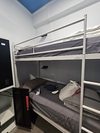 Read moreI booked 7 nights. I was lucky to get a lower bed. When i got to the room, technically i have 1 roomate but she was not there for few nights. Room was clean. A little dusty and still have few hair strands on the edges. The sheets were not changed in the duration of my stay. Mattress was thick, comfy. No towels provided. Please bring your own towel and toiletries. Shower room was clean too. Very convenient as the ladies bathroom is near my room.