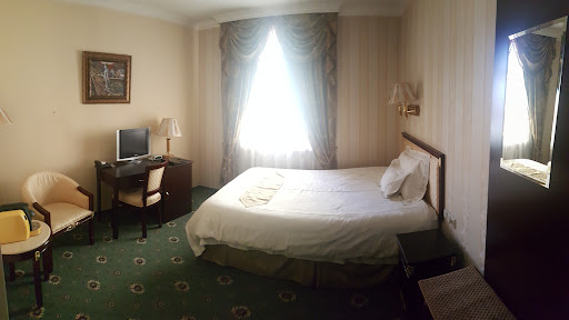 ...now is just simple hotel which pretend to be a 4th star. Luxury from ancient times, attacks already at the entrance in the form of dusty, crystal chandeliers and worn out, here and there carpets on the stairs. Nice lady on the Reception, after my request for a quiet room, giving me key card to the room with view to the main railway station, and the one of the loudests city street. But noise from the street is not that annoying, comparing to the noise from the neighbour rooms. Walls were so thin, that when the guest in the room next to mine, sneezed, I felt like he was sitting next to me. So every morning, me and this, unknown guest, woke up at 6AM, as his alarm clock was set for this hour. Even that I planned to sleep bit longer. ||WIFI in the room, was terrible. I was no able to use Internet. When I check with speedtest - it showned me less than 1mbit download bandwidth.||So beeing offline, I decided to watch TV, for some entertaiment. But even that hotel is located less than 100km from the Polish boarder, there is no Polish channels. But you can watch Korean or Russian TV... ||And the breakfast. When you woke up that early, in some hotels it is a pleasure to go for tasty breakfast. Not in this one. Diluted scrambled eggs, burnt bacon and cheap sausages. Only bread was tasty fresh everyday. ||So hotel generally it's average. On one hand location in the city centre it is advantage, but if you looking for silent night - go somewhere else. If you like oldskool luxury hotels, then you will love this one, but if you looking for simple, clean and modern style - go...