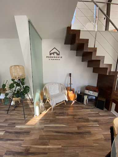 Podkrovie v perinach je krasne zariadeny mezonet, do detailu vyladeny tak, aby ste si pobyt v nom uzili v maximalnej miere. Z vonku tazko uverit, ze bezna stara bytovka vie skryvat takyto moderny a zaroven stylovy byt. Najdete tu vsetko, co pocas svojho pobytu mozete potrebovat, aj mnozstvo bonusov naviac, ako napriklad gitaru v odpocinkovom kutiku, retro gramofon, moznost pripojit sa na reprosustavu cez bluetooth prijimac. Keby bolo vonku velmi skarede pocasie, v TV na vas pocka HBO Go ucet. Radsej vsak vyuzite caro Banskej Stiavnice (idealne mimo sezony) a chodte sa poprechadzat mestom ci prirodou na okoli. Do historickeho centra je to asi 20 minut prijemnou pohodlnou chodzou. Apartmanu sice chyba vytah, ale 4. poschodia vam akurat prekrvia telo :) Klimatizacia este nebola nainstalovana, ani v polovici augusta vsak nebol vecer problem vyvetrat na prijemnu teplotu. Odovzdavka klucov prebieha cez samoobsluzny smart zamok, ku ktoremu v den ubytovania obdrzite PIN. Ubytovatel Martin na vsetky otazky reagoval obratom, cela komunikacia bola uplne perfektna. Pre nase bicykle poskytol priestor v pivnici a dodal aj masivne zamky pre ich...