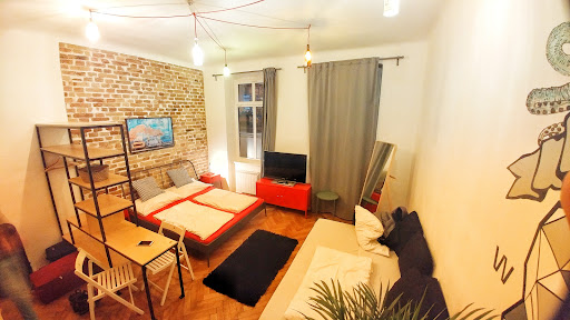 Read moreVery easy to find and get in - self operating card system. Studio Jägermeister was in the second floor, windows to a green courtyard. Simple, but very comfortable and clean. Bathroom is also modern and clean including towels. Maybe, the step between bathroom and room is a little surprise. I was accompanying my daughter to a concert, we needed only one night stay, so we did not try to cook, but the little kitchen was also clean and the fridge working. Despite the quite hot weather, the temperature inside was very pleasant. The beds were comfortable, the mattresses of a good quality, not extremely soft or tough. The idea to desing the room according to the spirit including symbols and empty bottles is brilliant. We had our breakfast in the second building in Cafe Possonium and Lokal U nas and it...