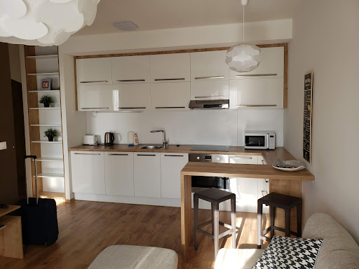 Read moreThe apartment is very modern and clean. The kitchen is well equipped. There is a washing machine in the bathroom. Parking is available at extra costs. The city center is just around the corner. Check in is all contactless which can be a bit confusing. Upon arrival you need to collect your key from a key safe with the code provided by email. All support is done by phone or email. We never met any staff. There is no name on the building. We had to look for the right entrance and the passage with the key boxes. It is a great place to stay. We brought a wheelchair which was not always easy. The entrance to the building had a narrow door and the elevator was very small. It would just fit the wheelchair but then noone else...