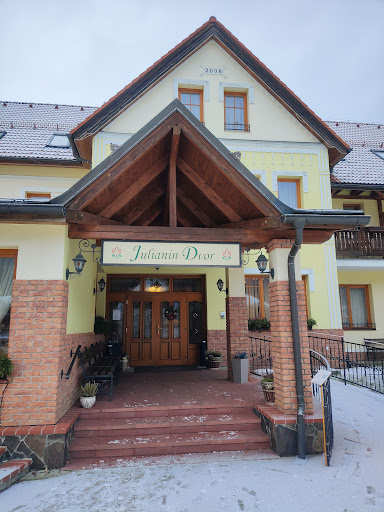 Read moreBoli sme tu prvý krát. Prostredie krásne, hotel pekný a čistý. Recepčné veľmi milé a ústretové. Mali sme pobyt na 3 noci s raňajkami a bazénom. Izba bola s balkónom, chladničkou a tv- pre dvoch akurát. Kúpeľňa tak isto, všade pekne a čisto. Jedna dosť zásadná vec- zástrčky sú nelogicky rozmiestnené za nábytkom, alebo veľkou posteľou 🤔 toto je trošku nedomyslené, lebo aj nočné lampy bolo obtiažne zapojiť nieto ešte nabiť telefón či notebook🤭. Posteľ je veľmi pohodlná, vyššia, matrace perfektné až na nešťastné vankúše 🙃 ale tie sa pri trošku dobrej vôle dajú nejako poskladať pod hlavu. Keďže bola izba na prvom poschodí a skoro nad bazénom, tak bolo dosť cítiť chlór v kúpeľni a aj hluk z bazéna cez ventilátor. Zase sme mali prehľad kedy je bazén prázdny 😁😁😁. Tak isto bolo počuť dunenie z kolkárne. Nič tragické, na dovolenke sa s tým počíta 😁. Keďže ale hotel nie je úplne obsadený, čo je na jednu stranu výhoda - v bazéne sme si s manželom mohli dosýta zaplávať, dali sa aj tieto nedostatky prehliadnuť a do 22 hodiny bolo už všade ticho. Druhou- horšou stránkou takto málo obsadeného hotela je, že raňajky boli slabšie -dosť malý výber. Ale zase na druhú stranu hladný nebol nikto. A je pochopiteľné že aj výber jedál sa musí prispôsobiť danej situácii. Hotel je super hlavne pre rodinky s malými deťmi, tie sa tu prehrajú v pohode aj celý deň. Vonku je zábavy habadej- skákací hrad, trampolína, pieskovisko, dopravné ihrisko... Tráviť však celý deň v areáli pre dospeláka by bola asi nuda. Hotel ponúka na izbách itinerár vyžitia v okolí, čo veľmi chválim. Orava je naozaj krásne miesto, je nutné však počítať s vrtkavým počasím, ktoré sa dokáže meniť aj každých 5 minút, ako sa to stalo aj nám. No nie je zlé počasie, ale je len zle oblečený dovolenkár. My sme si užili aj v daždi aj za slnečného počasia, či už Oravský hrad, plavbu loďou Orava, Slanicky ostrov, výlety a prechádzky do okolia, Rio de Klin, Františková Huta, múzeum Oravskej dediny či výlet v stredu do Jablonky na trhy. Mimochodom tie sa už veľmi neoplatia. Tovaru síce mraky, neviete kam sa kuknúť ale veru pre našinca už doooosť draho. Ak sa vyberiete na dovolenku na Oravu určite zvoľte Julianin dvor ako možnosť ubytovania a večerného relaxu vo wellness, na bowlingu či v reštaurácii. Je to tiché a čarovné miesto, kde vás privítajú s úsmevom a...