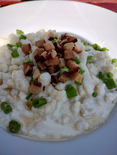 Okrem toho boli bryndzové halušky chuťovo nevýrazné a bryndzu pripomínali len názvom – bryndza tam buď nebola, alebo len v minimálnom množstve riedená so smotanou a nejakým lacným syrom. Ceny boli pritom vysoké, čo by sme v horskej lokalite akceptovali, ak by tomu zodpovedala aj kvalita jedla a služieb.