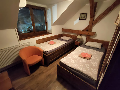 This guesthouse is located about 5km away from Nitra city centre in a quiet street with its own gated car park. ||The room in which I stayed was a wooden and brick structure with 2 comfortable single beds, a small clothes-hanging area, TV, some drawers and small shelves, a bedside lamp, a table with 2 chairs and a good bathroom. However, the shower cubicle had slow draining and the shower power was poor. ||There is a buffet breakfast available from 7am every morning. ||All rooms, doors and the car park gate require a magnetic key. Therefore, you should make sure you...