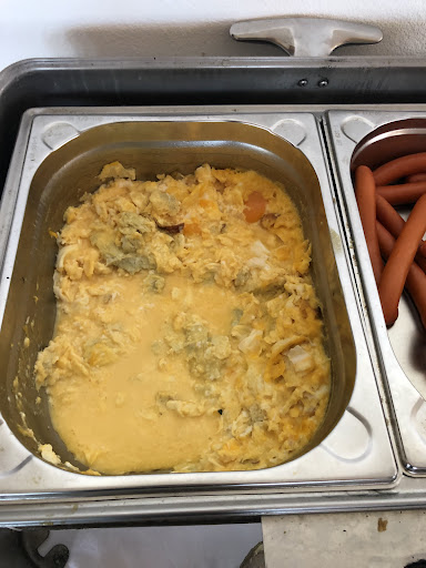 The breakfast was quite nice. Although the scrambled eggs were wet and not fluffy. Could have been cooked better. The tomatoes that I suppose were meant to be on the bread were cut in four. I would prefer if they were sliced so they are easier to eat and put in/on the sandwich.