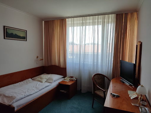 No, kde bych asi začal. Příjezd do podzemních garáží ve mně hned vyvolal dojem, že jsem přijel do Gotham city a jakmile vylezu, skončím jako rodiče Bruce Wayna. Tma, smrad. Hotelové loby již vypadalo lépe, hned jsem se cítil jako na přelomu 70 / 80 let. Pan recepční byl celkem milý. Po příchodu na pokoj se pocit, že jsem cestou z parkoviště na recepci objevil cestování časem ještě více umocnilo. Jedné, co mě ujistilo, že jsem ve stejném roce, jako když jsem přijel na parkoviště byla LCD televize. Pravda již taky dost zastaralá ale byla... Pokoje potřebuji zoufale rekonstrukci. Na vybavení se již podepsal zub času. Postel opravdu dost vrže, alespoň ta má, ale předpokládám, že v ostatních pokojích to bude stejné. Naštěstí matrace byla pohodlná a pokud nejste postelový cestovatel, dá se celkem dobře vyspat. Někomu by mohlo vadit umístění v centru a tudíž i přítomný hluk z venku. I když jsou okna plastová, stále z venku proniká dost hluku. Co se týče hluku je to bohužel velký špatný i co se týče odhlučnění mezi pokoji. Naštěstí pokoj vedle byl prázdný, to se bohužel nedalo říci o pokoji na demnou. Jako pozitivum beru tlak ve sprše který je opravdu velký a teplá voda, je opravdu teplá. Bohužel, zde není sprchový kout ale vana bez zástěny jen se sprchovým závěsem. To s kombinací silného tlaku ve sprše neodvratně způsobí záplavu ve zbytku koupelny. Co se týče exceletniho tlaku vody, není úplně skvělé mít stejný tlak i baterií u umyvadla. Pokud to člověk nečeká, pustí si vodu, zjisti, ze úhel dopadu vody při vysokém tlaku neodvratně způsobí, že se člověk znovu sprchuje. Čistota byla v pořádku, i když Monika Gellerová by zřejmě neusla tak hladce, jak by si při návštěvě 4 hvezdickoveho hotelu představovala.