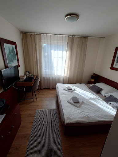 Negatívne: Chaos z pohľadu personálu. Vybavovanie agendy na recepcií bol pre nás ,,boj," a chvíľkami som mal pocit, že personál má úplný zmätok v rezervačnom systéme a o prehľade ubytovaných hosti. Po vyhľadaní záznamu našej rezervácii ,,boj" ďalej pokračoval, keď prišlo na riešenie problému s našou izbou. Najprv nám oznámili, že máme byť trpezlivý a počkať asi tak dve hodiny, zatiaľ čo nám nachystajú izbu. Za dve hodiny keď sme sa vrátili do penziónu sa absolútne nič nezmenilo. Pani na recepcií sa na nás pozerala akože čo od nej vlastne chceme a až po chvíli si uvedomila, že nám mali nachystať tu izbu. Táto pani zrazu odbehla, že nám odovzdá kľúče od našej izby, namiesto toho, keď sa vrátila zmätok a chaos naďalej pokračoval a nikto z personálu ďalej o ničom nevedel. V tom momente, keď som to videl, mi to skôr pripomínalo scénu ako z nejakej nevydarenej grotesky. Potešilo ma, že nakoniec po celom tomto zmätku na úvod sme sa za nejaký čas konečne dočkali našej izby a mohli sme sa ísť konečne vybaliť. Ďalší problém bol problém z rezervovanou izbou. Ohľadom mojej požiadavky som v dostatočnom časovom predstihu telefonický uvedomil správu hotelu a dôkladne som požadoval, že chceme jednolôžkové oddelené postele, pričom aj napriek tomu sme dostali izbu s manželskou posteľou. Kvalita postele a matracov bola tak úžasná, že ešte mesiac po tejto dovolenke som cítil kríže. Penzión síce disponuje raňajkami na vysokej úrovni, ale to je asi tak jedine, čo tento penzión v oblasti stravovania poskytoval. Je pochopiteľné, že penzión nie je povinný poskytovať obedy, ale mohol by aspoň poskytovať večere. Keď sme chceli s priateľkou ísť na večeru, tak sme museli ísť jedine do vedľajšieho penziónu, kde takúto službu ponúkali tak ako svojim hosťom, tak aj ľuďom, ktorí neboli priamo ich ubytovanými hosťami. Dní, čo sme tu boli ubytovaní bolo sparné počasie a informoval som sa u personálu, či je možnosť za príplatok si z baru alebo aj inde v penzióne kúpiť si fľašu minerálnej vody. Personál nám povedal, aby sme si vodu išli kúpiť do najbližšieho obchodu. Rovnako tak penzión neposkytoval, špeciálne služby s donáškou napr. šampanského, sektu atď. na izbu za príplatok. Na izbe sme mali nachystané len dve nálevové vrecka s čajom, dve instantné kávy typu 3 v 1 a pár vrecúšok s cukrom na osladenie, čo v spraných teplých dňoch nie je to, čo by sme chceli. Izby nemali vo svojom vybavení aspoň malú chladničku, kde by sme si mohli odložiť potraviny, ktoré v teplých podmienkach rýchlo podliehali skaze. Na izbe bolo poškodené okno. (Nedalo sa zatvoriť).