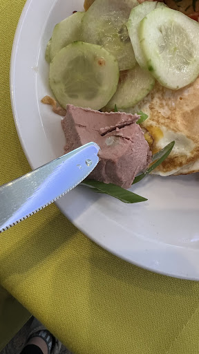 Read moreJedlo veľmi chutné, naozaj hodnotím 5 z 5 bodov. Porcie pomerne veľké a jednoznačne postačujúce. Prostredie pekné, vynovené, pohodlné. Chýbalo mi nejaké označenie vchodu do reštaurácie/hotela, keďže sme tam boli po prvýkrát, mali sme s tým menší problém. Džbán s vodou k dispozícii. Chýbali mi korenicky na stole v čase, keď sa podávalo denne menu. Dlho trvalo, pokiaľ nám objednané denné menu doniesli na stôl. V čase našej návštevy bolo 3 obsluhujuci. Očividne jedna bola nadriadena, ktorá ich za mňa, ako tichého pozorovateľa, pomerne dosť dirigovala a dávala najavo svoju nadradenosť. Druhy obsluhujuci bol očividne na niečo nahnevaný a zlostny. Tretia, ta ktorá nás obsluhovala, bola max ústretová, nápomocná a vsimava. Celkovo si z tejto návštevy neodnasam zlý dojem, ale ani waw efekt. Prajem...