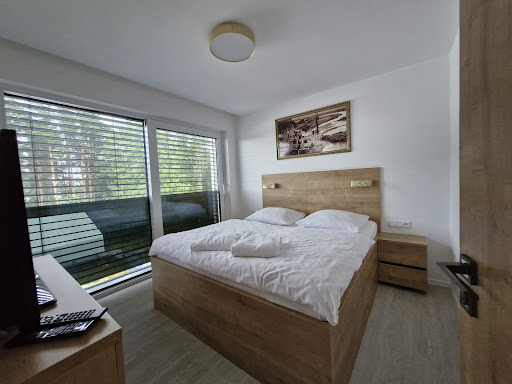 Read moreCiche, spokojne miejsce, 10 min do jeziora, cena przyzwoita. Apartament w dobrym stanie, czysto i zadbano- chyba używa się tylko parę lat, sporo miejsca w środku, duża łazienka z wanną, parking pod domem( jest też garaż), widok na lasek i jezioro. Jak dla rodziny z dzieckiem, to było okej. Dżakuzi to było hitem syna- 3razy w ciągu...