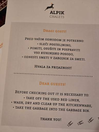 Read moreErgänzend zur letzten Review vor einigen Jahren, kann ich heute sagen, Alpik Chalets in Ukanc, Bohinj, gehört nach wie vor zu meinen Favoriten als Domizil für "Wanderurlaub in den Bergen". Kürzlich übernachteten wir als Familie in einem der neuen exklusiven Chalets mit Sauna und Kamin, die erst dieses Jahr eröffnet wurden. Der Komfort ist noch einmal optimiert worden im Vergleich zu den bereits schon bestens eingerichteten Ferienwohnungen. Der traditionelle Stil mit duftender Holzausstattung und Stoffen mit lokalen Mustern, passend zur Lage im Nationalpark Triglav, wurde dieses Mal mit modernsten Materialen in der Küchenzeile sowie im Badezimmer kombiniert. Frühstück hätten wir über einen externen Lieferanten bestellen können, haben wir aber nicht. Kochen macht hier richtig Spaß, denn es fehlt an nichts in Hinblick auf Geräte und Utensilien. Der Blick in die Natur rundherum ist fantastisch. Im Liegestuhl liegen und grillen auf der eigenen Terrasse am Häuschen beim Wildbach ist schon ein besonderer Luxus. Das grüne Anwesen ist sehr gepflegt, viele Bäume wurden nun noch zusätzlich gepflanzt. Inhaber Jaka, dem das Wohl der Gäste und auch ein nachhaltiger Tourismus in der Region sehr am Herzen liegt, hat uns vorab und zwischendrin immer wieder mit Freizeittipps wie dem Blumen-Festival versorgt. Im Mai und Juni blühen die bunten Wildblumen auf den Wiesen, dass es nur so eine Freude ist. Wanderwege gibt es direkt ab Haus, weitere interessante Routen mit einer Anfahrt von etwa 20 bis 30 Minuten. E-Bikes kann man über einen externen Anbieter mieten :-)