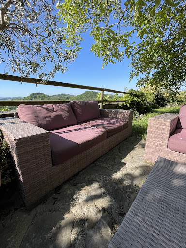 We were warmly welcomed by the lady owning this b&b. After showing us the room and the house, she offered us a pichet of the wine produced by her son. Fruity and smooth Red wine. We ordered a bigger pichet for our dinner.||The room was spacious and nicely even simply furnished. Comfortable bed. Quiet location. ||Fantastic views of the surrounding hills, villages and vineyards.||Gorgeous copious breakfast with fruits, bread, eggs, ham, cheese, coffee, roasted courgettes, and more... All served outside under the shade of the trees.||About dinner, there’s no cooking facilities in the room so you either reserved it ahead or you bring your picnic. We had a small portable barbecue, table and chairs in the car so we settled a bit away from the other guests (to not bother them with the smoke) and cooked some simple dinner. In the middle of the vines...||We only stayed one night but truly wished we could...