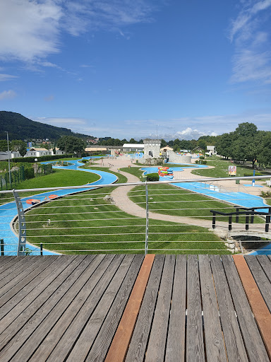 For the outdoor swimming pool, you can enter and leave and re-enter after two hours we were told. Since exiting is by button (and not scanning your NFC tag like the indoor pools) my best guess is the two hours start ticking as soon as you enter. You have lots of water slides, for the very little ones, and daunting slides for the more adventurous people, labeled by colour (black, red, blue). All those coloured slided have an overseer present who watches the guests and make sure everything stays safe. They also check if your kids are tall enough to ride the slide in the first place. They also walk the premises and use whistles if you do something which is not allowed, which IMHO is a good thing. Despite being in the summer holidays it didn't feel crowded. There are so much pools that people scatter. Pools are also accessible for outsiders, we had one Slovenian bank holiday and that day was actually the only crowded day in the outside pools (31 degrees).