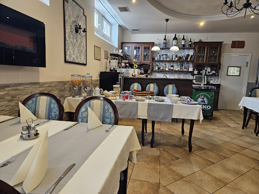 My wife and I stayed 1 night, arriving by rental car at 1 PM and parking in their private lot. The friendly and informative owner registered our passports, gave the WIFI password, then carried our bag upstairs to our room explaining which keys opened the exterior door. ||Carpeted room #23 was spacious with 2 soft twins put together, an easy chair, closet, desk with small refrigerator, hot pot and TV with extensive channel guide (BBC/CNN/SKY in English), then a large fully outfitted bathroom with bidet, tub shower and instant hot water. ||Our opening windows faced the hotel’s courtyard with blackout curtains, additional coffee/tea were provided in the 1st floor hallway, but our room WIFI was slow at times.||The 7 AM breakfast in their lower restaurant was served with coffee, juice, fruit, cereals, yogurt, meats, cheese and breads with an array of compliments.||This 3 floor 1903 villa-hotel is located 1 block from a Mercator supermarket, 3 blocks from the town center and overall provided a...