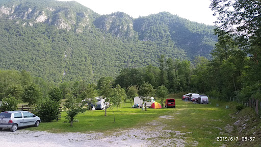 Family owned, quiet, relaxed and helpful site, for us, the extra highlight was the kitchen and the tables. Enough charging ports for devices if you need that. The owners do just about everything around the camp, which means you might have to wait sometimes. Showers, sinks, toilets OK, clean. We had tents this time, surface OK, easy to pin. Playground looked quite popular among kids. One very good thing is that there is a field where you can setup your place really far from the center of the camp if you need more privacy and silence. Note that the camp is not fenced, the lower part is connected to the Kobarid marsh and the town by a footpath, about 2km, nice except heavy rains when big puddles are formed as we experienced. The entrance is via a short but narrow gravel road which may require some attention for campers and caravans but nothing extraordinary. Something for tent users, there are lights around that are always on during the night, so plan with that if you like to sleep in dark.