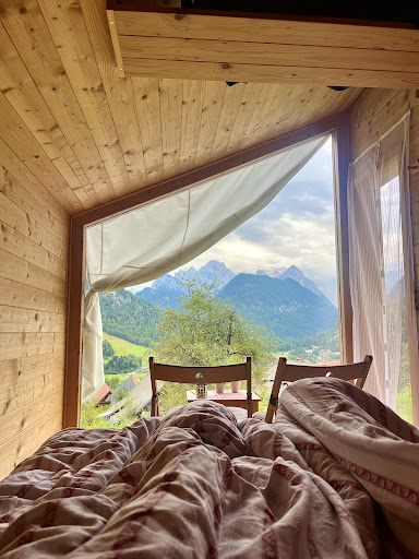 I stayed at Mountain View Glamping for 1 night on my 10 day trip around the exceptionally beautiful country of Slovenia.||Mountain View Glamping was quite simply exceptional in all respects and one of the best places that I stayed at during my trip.||I received a very friendly welcome from Matic on arrival (which included a courtesy bottle of Slovenian white wine) and he showed me round the accommodation and other facilities available.||There are just 5 glamping cabins here which offer a stunning view of the Julian Alps from both outside and from the bed inside due to the large glass window front. It is a very quiet location other than for the sounds of nature.||My cabin was exceptionally clean and comfortable and provided a perfect overnight stay. The sunrise over the Julian Alps in the morning was amazing.||Each glamping cabin has an individually designated shower and toilet in a nearby building and mine was very modern and clean. This building also provided a coffee machine (free) and a fridge to store food, etc.||The key fob to the glamping cabin provided a QR code and a link through to loads of helpful information regarding the accommodation and the surrounding area. I had not come across this before …. what a good idea!|The only potential issue for some visitors might be the lack of any electricity in the glamping cabin but this caused me no difficulties at all.||Mountain View Glamping is highly recommended for an overnight stay in this part of Slovenia.||Thank you...