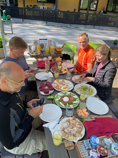 Talking about food, it was incredible. Dinner after a hard day's ride, was an amazing selection of different types of meat and vegetables. I dare you to eat everything what they serve you. Next morning breakfast was a rich feast with something for everyone: fresh smoothies, multiple juices, a wide variety of fruits and vegetables, eggs, sausages, croissants and bread, and of course, great coffee. If you could wish for it, it was there, and all that with a million dollar view.