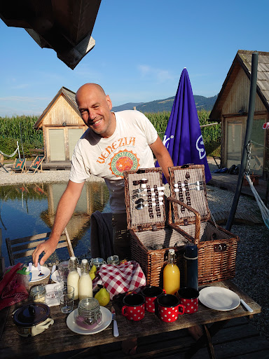 Read moreSuper nice wooden cabins. Four in a circle around a little pool. Nice for toddlers and to keep your feet cold in the hot summer days. Located next to the water park, a natural pool with shallow and deep water. Naturally cleaned with reed beds. Perfect location surrounded by hills and forests. Enough to see and do for 2-3 days, especially for families with children in the agen of 8-15 I'd say. Nice activity booklet with exercises at the park, and the nearby castle. Breakfast at 7.5 EUR pp came in a picknick basket and we enjoyed it at our own wooden terras. Don't forget to go for the early morning swim when the water is still warmer than the air and all around is foggy and fresh. By the way, they made a complete and rich vegan breakfast...