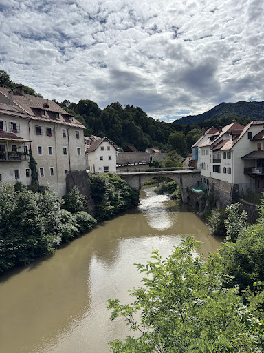 This is a splendid little place, overlooking the river Sora, in Skofia Loka. Unlike some of the B&Bs we've reviewed the Hotel Garni Paleta is not hard to find. In fact you absolutely can't miss it as you drive down to the river. You can put your car into the little alley next to the Hotel to offload luggage. Hotel parking is close by.||||This place has been developed out of his former family home by Igor, your host. Our room was clean, bright and modern, and overlooked the river. Its twin beds were on a mezzanine level, reached by a steep little spiral ladder. Cooling and wifi were both excellent.||||Breakfast is served in the newly refurbished former wine vault which also has river views. It was Continental, with excellent coffee, various breads, cheese and meats, and some fruit.||||We really cannot fault this B&B, and thoroughly recommend it. We are also grateful to Igor for his suggestions on our onward travels...