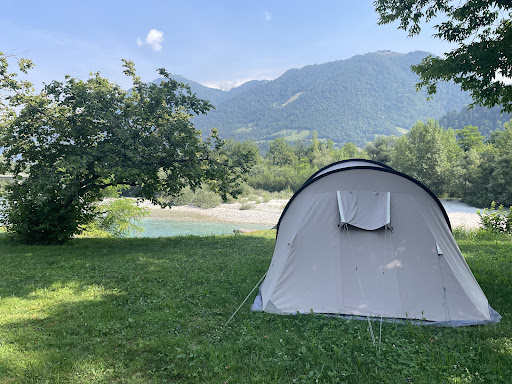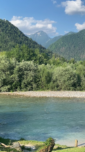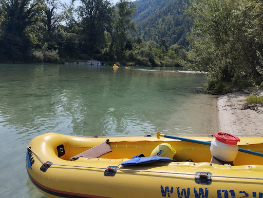Read moreThe camping is located next to the beautiful turquoise river Soča. It is very calm there. We sadly didn't stay at the camp (we were there for Tolminator), but we rented a mini rafting boat with them. The activity was super fun and the staff was extremely helpful and nice. They also offer many other activities like canyoning or "normal" rafting. The facilities were clean and after 4 nights at Tolminator I almost cried seeing the disinfectant to clean the toilet seat :D We also ate at their restaurant, the beer and pizza were nice as well! Everything smelled of wood which I appreciated. The prices seemed more than fine to me, and we would actually have spent less, booking there for 4 nights (20€/night) + electricity (6€) than paying for the "electricity upgrade" at Tolminator (90€). Will definitely book there if we go...