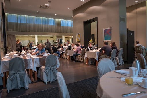 The breakfast they serve is the reason to stay at this hotel above all others. It's seriously good and it's so popular that getting a seat can take a few minutes, at least until they start opening up adjacent rooms. Seriously, it's a lively experience. They have a full spread for breakfast, including sausage and eggs, pastries, fruit juices, coffee and cereal. Almost any breakfast food you can think of actually, and then for good measure a few that aren't your typical breakfast foods. The location is very central to Ljubljana, with the castle a 20-25 minute walk away (although be careful as it is significantly uphill. If you're not in decent shape it's probably a better idea to drive up the hill and park at the castle.) There are a handful of cafes nearby, if you exit the hotel and take a right. Once you get to the river, if you go left before crossing the bridge, that puts you at a place named cacao which is highly recommended. That entire district is exciting, even when I was there in January. Everyone speaks English but they do appreciate it if you learn a few basic phrases beforehand. Google translate is your friend here. The hotel is kept up well, but as is typical of the area, the fit and the finish of everything is a bit worn down. The shower bucks this trend at the expense of having an unusual configuration - the hardware is on the side of the tub facing towards a glass panel that runs about 2/3 the length of the tub with a swivel door. Don't make my mistake and open the door to turn on the shower and you won't get water all over the floor like I did. Also, it's a lot easier to pull the shower head out than to try and contort yourself to stand under the shower head. One of my favourite features was they put light switches for everything right next to your bed so you don't have to get up if you forget to turn off the bathroom light, or you can turn on the lights for yourself without having to fumble through the dark. Really wish more hotels would do this because it made my stay a lot better. Also, there's an Avis / Budget rent a car office in the hotel so if you rent a car at the airport from them you can just leave it in the parking deck (remember to fill up with petrol though) which is extremely convenient if you're going to the bus station nearby. Even if you're going back to the airport parking is complimentary and there's usually a space or two even at peak times even if the parking deck is a bit tight (entrance / exit is only one lane so you have to proceed with caution). Overall this is a really solid contender if you're staying in Ljubljana. I would say the benefits of the location and the conveniences well outweigh any trepidations you might have about the age of the carpet or configuration...