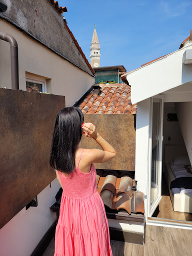 Our stay in Piraneska was very pleasant. We reserved a double room with terrace (room number 8). You must be careful when reserving a room at Piraneska because some rooms dont have a window (you can see that from the photos on booking and from reading the reviews), but this room that I booked has a very big, private terrace. Piraneska is located in the heart of Piran, in a very charming alley. The entrance to the old builing is very easy - you receive a number code that you enter when you enter the builing and the code is the same for the room. Very simple&easy. Our room was ob the top of the building. The room is small, but enought for a pleasant stay for 2 people for 2-3 days. There is a comfortable double bed, some storage space and private bathroom. There is also a small TV (I only found 3 slovenian channels which was enough for us since we are slovenian), a small fridge (which is also very convenient for storing some drink to drink it on the terrace) and effective air conditioning. The batrhoom is very nice, the shower is big. The room feels comfortable, clean and tidy. What I loved the most is the large, private terrace with the view of Piran church. There are 3 chairs and a table with an sun umbrella. The only thing I must warn you is that since the check in is available also during the night there is always a bit of noise in the building and you can hear everything people ate talking because walls are quite thin. But if you book this room the noise is minimal since the room is on the top. :) The communication with the owners was very...