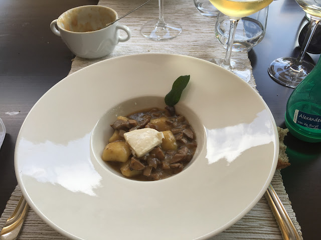 Nous y avons déjeuné à 4 sur recommandation de notre hôte et en nous fiant aux bons avis tripadvisor, malheureusement, notre expérience n'était pas satisfaisante. A premier abord, la carte semble intéressante, malgré des prix largement plus élevés qu'en Croatie. Nous avons pris en entrée 2 soupes de champignons, un carpaccio de poulain et des raviolis aux champignons. Le carpaccio était peu gouteux, la soupe aux champignons ressemblait à du Maggi en sachet et la quantité était mini, puis les raviolis aux champignons avaient la même base que notre soupe et étaient beaucoup trop salées. Notre fille n'a pas du tout aimé. Pour le plat c'était correct, assez bon, même si l'accompagnement était sans originalité : côtelettes d'ageau, médaillons de porc, avec la même sauce aux champignons déjà servis en entrée au goût de Maggi sauce chasseur. La serveuse nous a fortement incités à prendre des salades (à assaisonner soi-même !), du coup, on en a pris 2, mal nous en a pris, car facturées 3 Euros à l'unité sur la note. Les dessert étaient bons, même si dans 2 desserts on a retrouvé la même base de mascarpone variée une fois avec de la fraise (vrai coulis de fraises ? j'en doute) et l'autre avec des myrtilles. On reçoit la note : 125 Euros ! Wow, un sacré prix nous trouvons pour 4 entrée-plat-dessert, 2 cocas, de l'eau et 2 verres de vin, surtout pour la Slovénie (à Ljubliana nous avons dîné pour 66 Euros 3 jours avant, certes, dans un resto sans prétention, mais très bon), mais bon, on paye tout de même. Puis en sortant, je regarde l'addition de près : on a nous a facturé le carpaccio 3 fois ! J'y retourne, on me rembourse les 20 Euros de trop-perçu en s'excusant, mais cela m'a laissé une impression de vol, surtout après les salades imposées à 3 Euros pièce. Je ne sais toujours pas si c'était une erreur ou volontaire .... Pour finir sur une notre positive, la serveuse était très polie...
