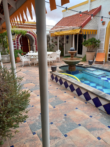 Β Β Β Read moreThis quirky, almost otherworldly little hotel just outside Steytlerville, is a testament to the survival of its creative and talented owners and performers, Mark and Jacques who have been doing this for 20 years. The hotel itself, packed full of bric-Γ -brac and all manner of flotsam and jetsom, is no architectural masterpiece, but a rather eccentric mix of Andalucian castle, Edwardian kitsch and East Rand beige. It works, even so, because it is a much loved product of its owners and regulars. The food is hearty; the lamb and veggies were very good, as was the breakfast; if a little predictable. My room was passable for a night with a cute stoep and an electric blanket. The bathroom was rather basic.|The main attraction on a Saturday night is the cabaret which was very enjoyable: canapΓ©s and drinks, dinner, traditional drag show interspersed with popular melodies on the piano by the two excellent entertainers. The only suggestion I have is perhaps to integrate the meal and the show more skillfully so that the evening doesn't lose its momentum and lower the volume just a tad. At around R1500 all in for one, very reasonably priced....