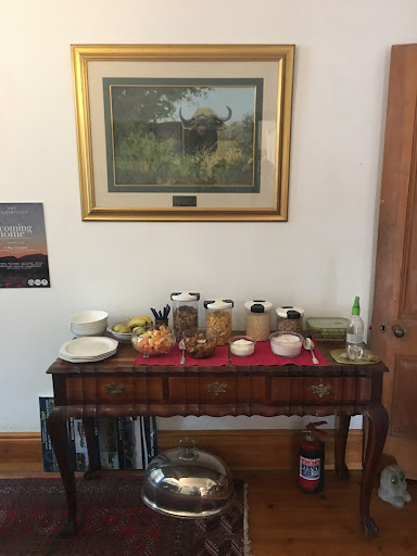 Read moreDurch die geringe Größe der Stadt befindet sich das Gästehaus, wie viele andere, ca. 5 Minuten zur Hauptstraße fußläufig entfernt. Es ist ein kleines Eckhaus und gut zu finden. Die pensionierten Gastgeber (Krankenschwester+Mechaniker) sind überaus nett und freundlich. Sie sind dort auf einer Farm bei aufgewachsen. Das Auto kann man hinter einem Schiebetor abstellen und von dort direkt in sein Apartment (bei uns Rosmary) gehen. Es besteht aus zwei großen Zimmern. Ein Zimmer dient als Küche/Wohnzimmer und das andere als Schlafzimmer. TV (kein Satellit) ist vorhanden. Kostenloses Internet über LAN, also mit Kabel, was die Gastgeberin einem stellt. Die Räume wirken durch die hohen Decken und die dementsprechenden Möbel wie ein Herrenhaus. Das ganze ist ebenerdig und behindertengerecht ausgestattet. Auch das Bad bietet genug Platz. Eine direkte vom Apartment aus abschließbare Durchgangstür befindet sich im Schlafzimmer. Dort ist dann auch gleich das Esszimmer was leider durchaus im Schlafzimmer zu hören ist und nicht unbedingt einen langen Schlaf unterstützt. Das Frühstück bestand, wie üblich in Südafrika, aus Cornflakes, Marmeladen, Ei und Kaffee und langen Gesprächen mit der Gastgeberin...