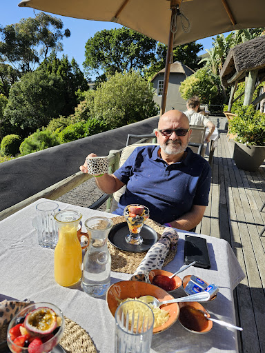 Read moreWe stayed at Ikhaya Safari Lodge for the last 2 nights of our trip. Arriving at 11.30am we were hoping to leave our luggage whilst exploring Kirstenbosch Botanical Gardens but to our pleasant surprise, our room was ready and we were able to check in. We stayed in Nyala and our friend Pumba was next door. Great terrace space as we knew each other but little privacy if not. The rooms were small but beautifully appointed and the view of the Constantia valley was fabulous. We had time for a quick game of tennis ( no charge) and the court was in good condition. The lodge is well located for the gardens, Constantia wineries and local restaurants. Would have liked time to visit Hout Bay Friday night market but as we were leaving the next day on an early flight, that will have to wait till next time. |Breakfast (200 zar pp) was excellent and a lovely setting by the pool. The outdoor seating area and boma provided a great space to relax and chat and the honesty bar was very reasonable. Just need to bear in mind that some rooms are very close to this communal space and could potentially be noisy. Also the steps down to our rooms were quite steep especially when taking luggage up and down. However, none of this detracted from the wonderful stay we had and I'd be very...