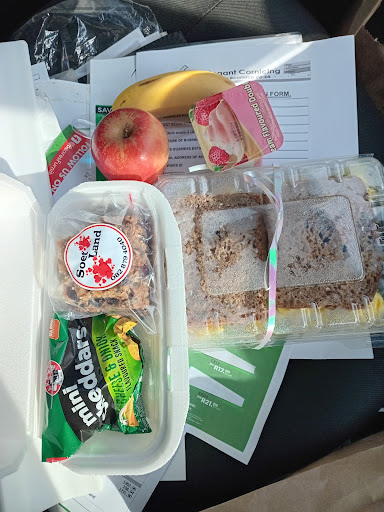 Complimentary to go breakfast ‐ two fruits, yogurt, sandwich, and snacks. Great warm and friendly...