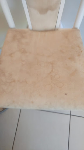 Another room no showerhead at all just an open pipe! The small chair in the room was broken and upholstery extremely dirty! The carpet appears to had a bad/dirty spot or it was burned before! One window with no curtains? Also no teaspoon in the room.