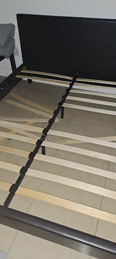 Inside, things only got worse. The room was dull, dingy, and utterly uninspired. The lighting is inconsistent, creating a dark, depressing feel throughout. No cutlery was provided, and the kitchen taps didn’t even work. The bathroom and toilet were in a state of disrepair, with visible signs of wear and tear everywhere. On top of all this, there was no lace on the curtains, meaning you either kept the curtains closed or exposed yourself to anyone walking by outside.