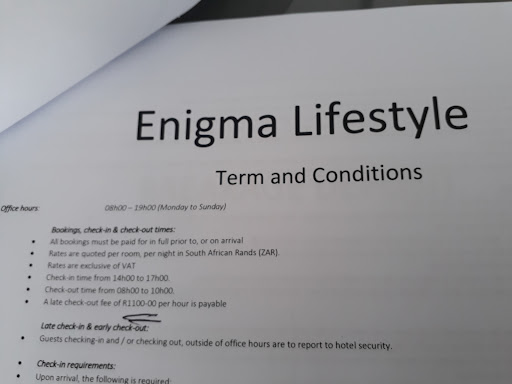 I have never experiencd such bad customer service and misleading photographs advertised by Enigma Apartment .I booked online paid via EFT in full only to be unhappy with the accommodation on arrival.The receptionist saw how disappointed I was and offered me refund. I didn’t use their facilities but I was later denied my refund as the management claimed I cancelled my booking and that there are cancellation fees which have not been stated on their website. If there are cancellation policies why did the receptionist offer me a refund instead of explaining these policies ? I initially booked for a two bedroom but was given a separate studio apartment and a one bedroom apartment and they claimed that it is a two bedroom apartment. They have clearly stated they do not care how customers perceive photographs posted by them, that the photographs are not accurate but are photographs closed to what they actually provide. The management is rude and have no customer value let alone business ethics. In regards to the refund offered on the day no refund has been provided to me thus far. I wouldn’t recommend anyone...