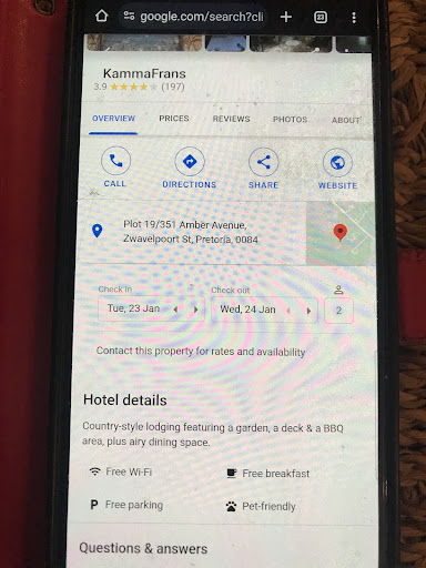 Ā Ā Ā Read moreWe were booked to stay over at the guesthouse/venue on Saturday 8 February. We came all the way for a wedding. As we arrived the lady at reception was not really friendly and I could see it was such an inconvenience for her to assist us in the abrupt manner we were received. If the above was the only issue, what a shock when we arrived to our āroomā⦠Haha I would rather refer to it as an outhouse with a bed. That shower is so small, the door cannot even close once you are inside. The state of the room and how dirty it is, is ridiculous. The mosquitos that I presume previous guest smacked against the wall, were still present, and the floors were dirty. Needless to say, we did not spend the evening, and I rather drove home at 23:30 the evening than stay over in the abysmall little outhouse they call a room.