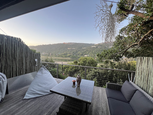 Read moreOur room was spotlessly clean when we arrived and indeed after the housecleaning staff visited the following morning. Not that you spend much time in your room as it has a private veranda with a settee and bean bags with a magnificent view across the valley and the hills beyond. Wilderness is a focal point for many trails, a gateway to the Garden Route National Park, and has a wide, wide beach which we couldn’t see to the end of let alone walk it.|The owner and staff are friendly and attentive. Carmel will WhatsApp you with a list and contacts for loads of activities and many local restaurants, at least one of which will pick you up at the door. |The immediate surroundings are quiet and peaceful - we walked the ten minutes or so to the nearest fish restaurant on the beach on...