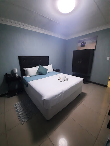 Nice, neat place, lots of nearby amenities since it's in town, the service is good, the staff is friendly, very helpful. Good interior. Has Aircon, satellite TV, bar fridge, telephone, kettle and tea. No shower, bathtub only (amazing at that), there's a big enough wardrobe. Each room has its own parking (in front of the door), aluminium doors with a burglar guard (also aluminium). The location is quite tricky since the map leads to a dead end, but you should pass the Engen garage, pass the police station, go straight until you make a left turn, conveniently enough,there are boards that lead you to the destination, good idea for new travellers in the are (hence my 5 stars...