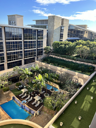Our room was on the 5th floor, overlooking the pool courtyard. We stayed for 5 nights and it was perfect with sufficient cupboard space and a nice-sized bathroom. Clean, comfortable, air conditioned and with blackout curtains. The location of the hotel is ideal, just a few steps away from Gateway Mall and about a 5 minute drive to the beautiful Umhlanga promenade and restaurant district. It's really well situated for travelling to Durban and Ballito, and 15 minutes to the airport.
