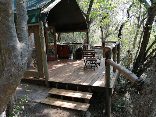 The tents are equipped with a fridge and kitchenette with all the amenities. Although outside it is protected from the elements with a seethrough cover, the deck and braai area overlooking the stream and wooded area is clean and very well looked after..