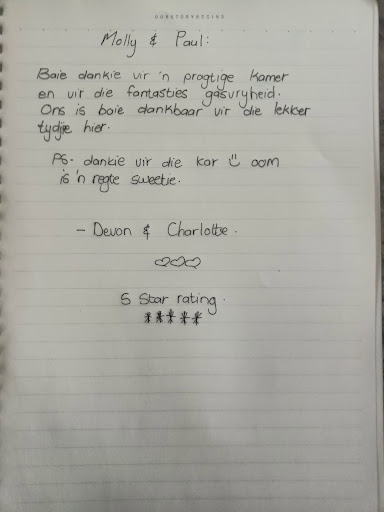 Read moreWe spent two nights in the guest house (25th - 26th December). It was an a awesome experience. Mollie herself with her husband, Paul, were soooo friendly to the point of trusting us with everything, leaving us by ourselves and traveled to Sandton. This guesthouse is awesome, worth the price you pay per night. I...