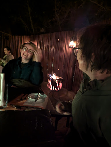 And when we are not on game drives we are eating...3 meals a day...when away from the cities with its resturants my expectations around food are not very high.Therefore, when I stumble on a place which delivers on the safari experience PLUS good food, I am beyond happy as all my needs are met for an amazing holiday. The food here gives yet another layer of pleasure....awaiting each meal eagerly ..subconsciously aware of the kilos you are piling on but shrugging the thought off for regret later. Since our arrival the kitchen consistly serves tasty, well plated and delicious food...cluedos to the chef who clearly knows what she is doing ...each plate visually beautiful and followed through with great taste. Breakfast dishes are diverse and wholesome; loved the crispy, buttery, and heavenly tasting croissants and lunch dishes are light and refreshing. I especially enjoy the evening meals as they take on the ambience of the night...soft dim lights in the dining room ( given my aging eyes I do have to squint to select the wine), the cool reflection on the pool and the beautiful sounds of the bush... complimenting the food. Some meals have lingered longer: the yummy pumpkin curry soup that was taken to another level by the coriander sauce, the caramelised onion soup with cream cheese, the salad: pear poached in pinotage, gorgonzola and caramelized onion; the creamy gnocchi dish with fresh crunchy broccoli. The off menu customized dishes for the pescatarian were always enjoyable! As the rates are all inclusive I was somewhat skeptical about what would be on offer, but this was unnecessary...the wine list is impressive; the method de classique and the gin are brands we regularly drink.The service is impeccable and one can easily attribute this to the fact that the Camp hosts 20 guests max...but this would be a lazy observation and deny the attentive, personal and yet unobtrusive service we received from arrival, on the game drives to the ever attentive waitrons. The service simply stated is STANDOUT! I will be leaving here feted and pampered.and as weighty as the African...