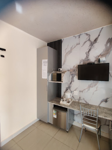 This is a brand new purpose built hotel and we arrived coincidentally for a one night stay on the first day of opening Feb 18 2019. The hotel rooms are beautifully furnished in a contemporary style and very clean. Security is excellent. Service friendly. DSTV television in room and tea making facilities. Free WiFi is planned but whilst we were there it was not available in our room. Eating out - within a 10 minute walk there is Steers, KFC, Debonairs Pizza, Wimpy and a Superspar. There is also an excellent restaurant and bar called Apex Lounge across the road from Superspar. Hotel in our opinion offers best value for money...