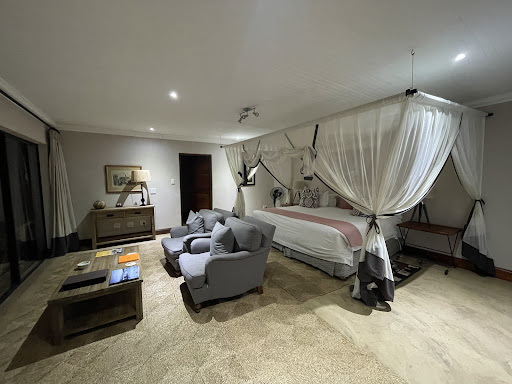 Read moreWe are about to leave the lodge after what has been a simply outstanding three-night stay. From our warm initial welcome on arrival through every aspect of the stay, we have felt like welcome family guests as opposed to paying visitors. Grace, the lady in charge of looking after guests’ food, drinks and well-being within the grounds, is such a wonderful lady, thoughtful, constantly smiling and singing, and she remembers those little details that make all the difference.|Our room is huge and comfortable, with literally the largest bed I have ever seen! The indoor seats, like those on the good-sized verandah, overlook the reserve within which the lodge is set - wonderful view! The bathroom is enormous, with a vast indoor shower, outdoor shower and separate bath! |The lodge as a whole feels spacious and luxurious but equally like a large family space. Sitting round the fire together before eating dinner round a large communal table, plus lunch with the owners and selected staff, adds to the family feel. Meals are uniformly excellent! |We did the two flagship tours, to the Isandlwana and Rorke’s Drift battlefields, on consecutive days. You can do them both on the same day, and other guests we met were doing that, but I can imagine it would be a pretty tiring day from sheer information overload! Both tours were superb - I am not particularly into battlefields, but was totally taken in by the wonderful, evocative storytelling of Bryan (Isandlwana) and Stewie (Rorke’s Drift).|We also had time to do the Graves Walk with Simiso (also well worth doing, and it rounds off the story of those 24 hours or so in January 1879), plus two of the self-guided trails around the reserve, which were clearly signposted and both really enjoyable to do.|These three nights have been a slightly unexpected highlight of our South Africa trip, and I would unreservedly...